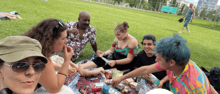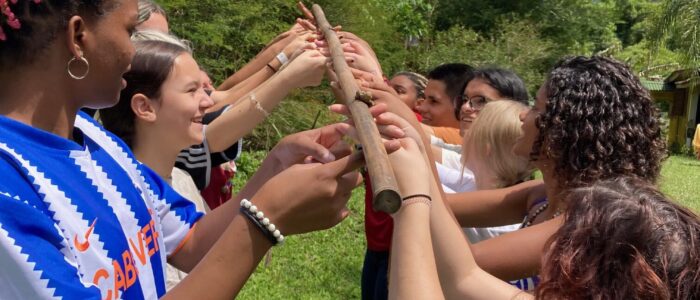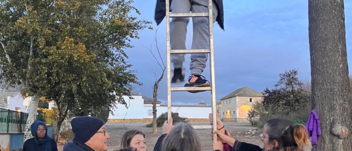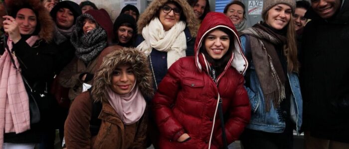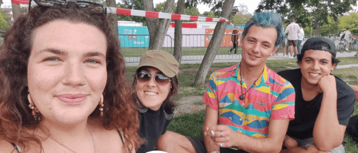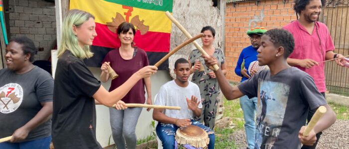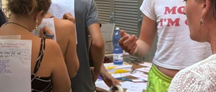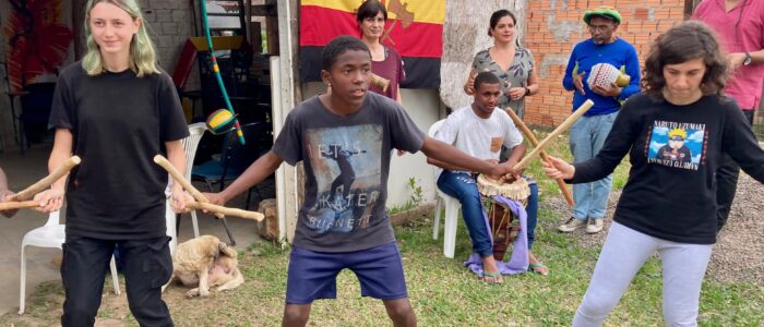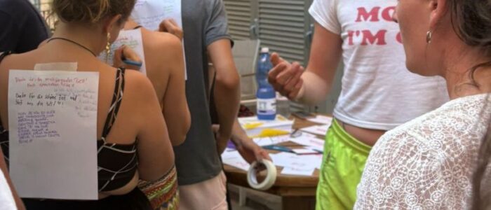 Die internationalen Begegnungen können an ganz unterschiedlichen Orten stattfinden. Das kann in Berlin/Brandenburg sein, aber auch in Marseille – im Süden Frankreichs – oder in … in Brasilien. Wir arbeiten mit unterschiedlichen Partner*innen aus verschiedenen Ländern zusammen. Wir haben zum Beispiel Begegnungen in Frankreich, Israel/Palästina, Spanien, Brasilien (…) organisiert.